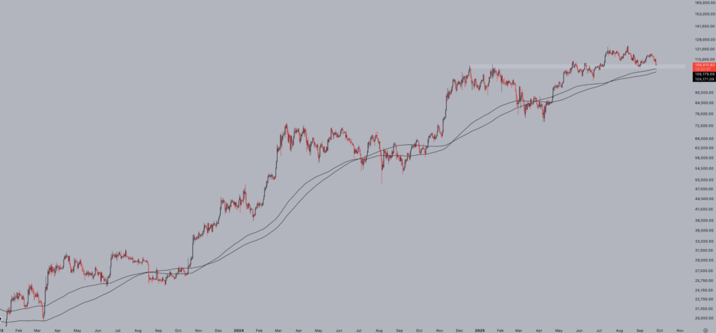 As of Friday, Bitcoin’s (BTC) 200-day EMA support was hovering around the $104,000–$106,000 range.